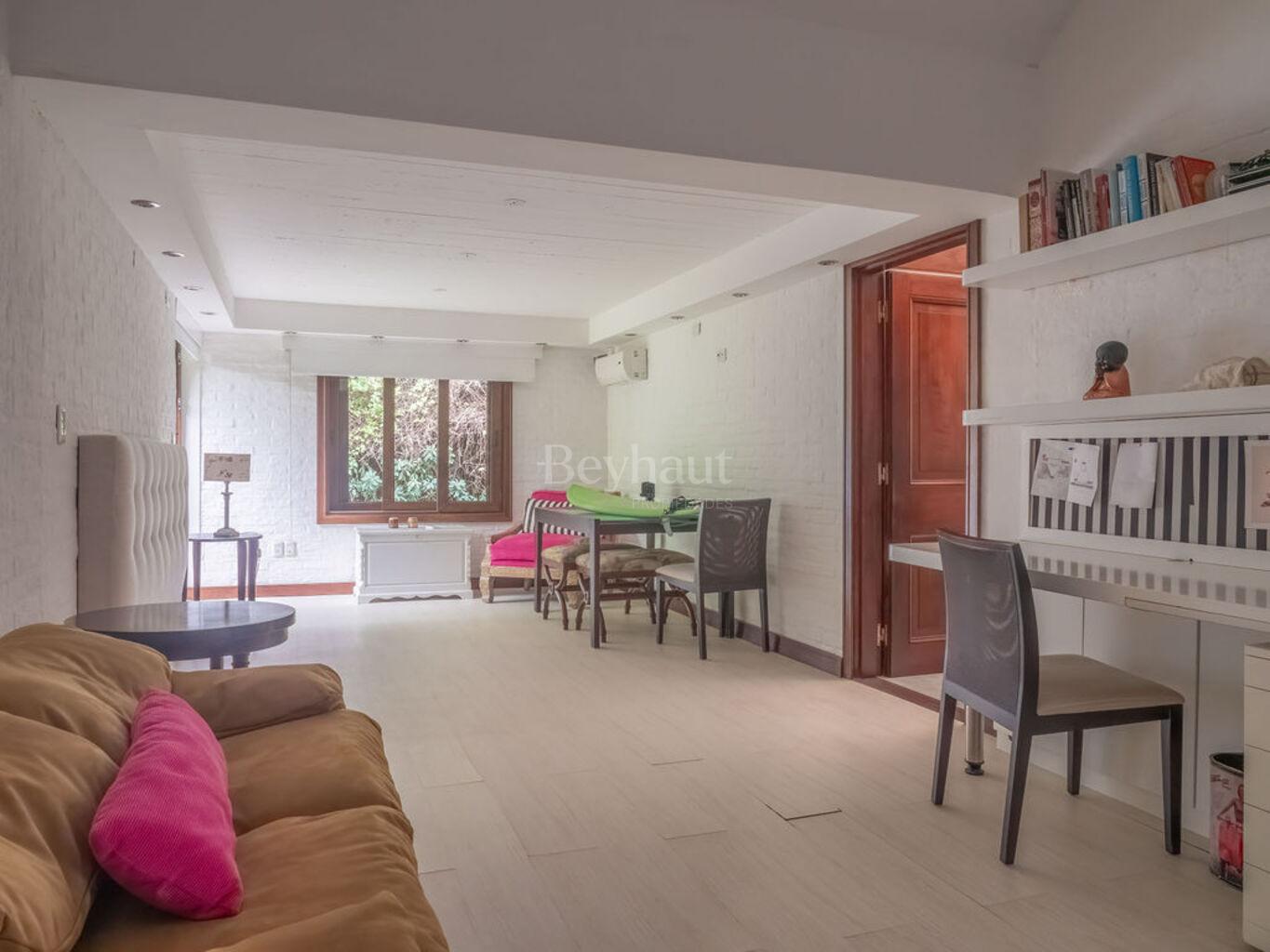Tres ambientes integrados y muy amplios: Living, comedor y estar/escritorio con estufa a leña y salida a exterior.