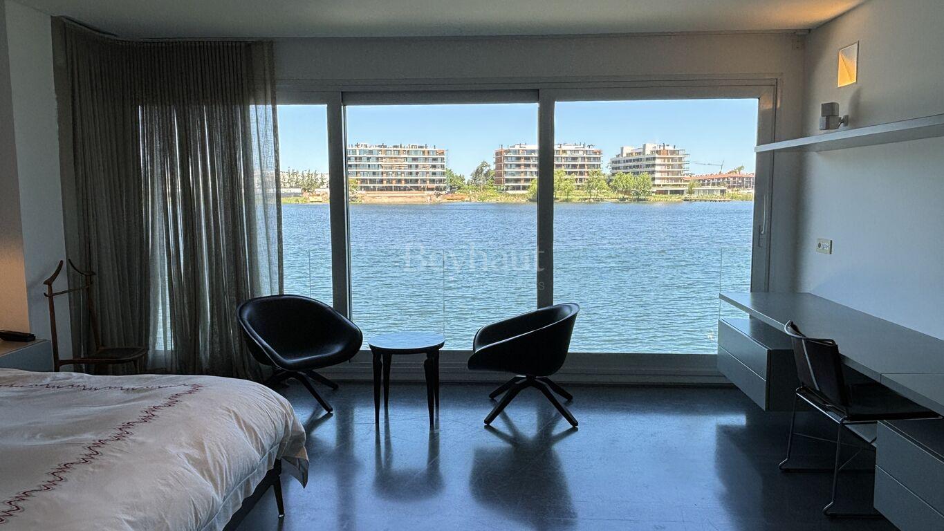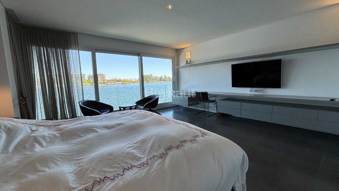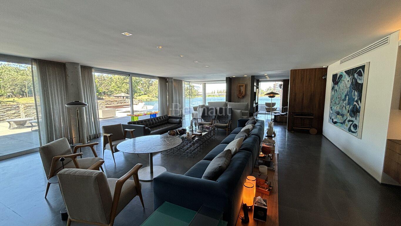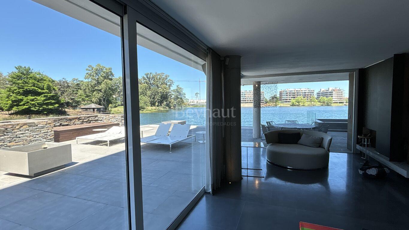En el nivel inferior, un espacio independiente para invitados con living-comedor, cocina, dormitorio en suite, terraza privada, jardín y acceso directo a un embarcadero exclusivo.