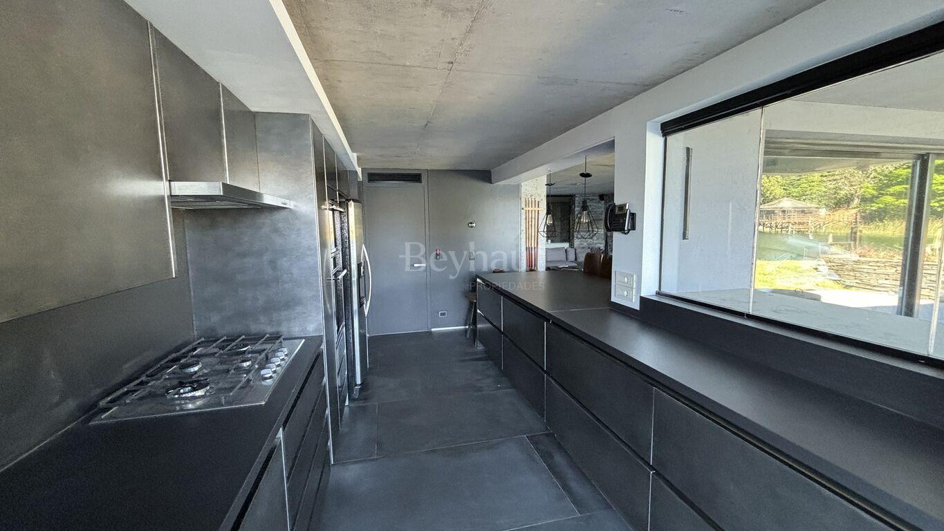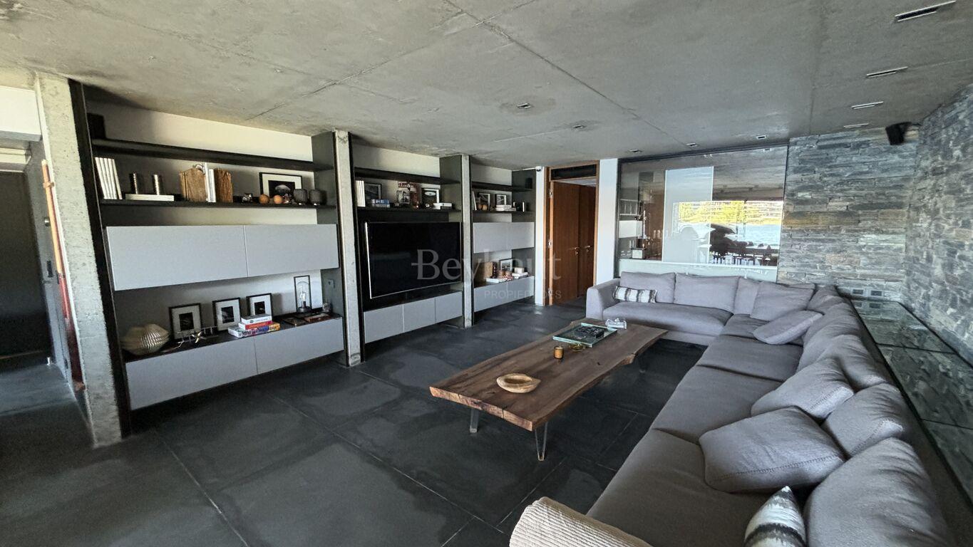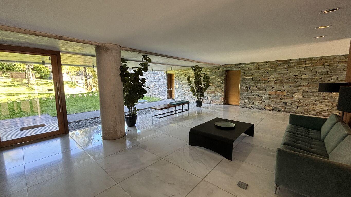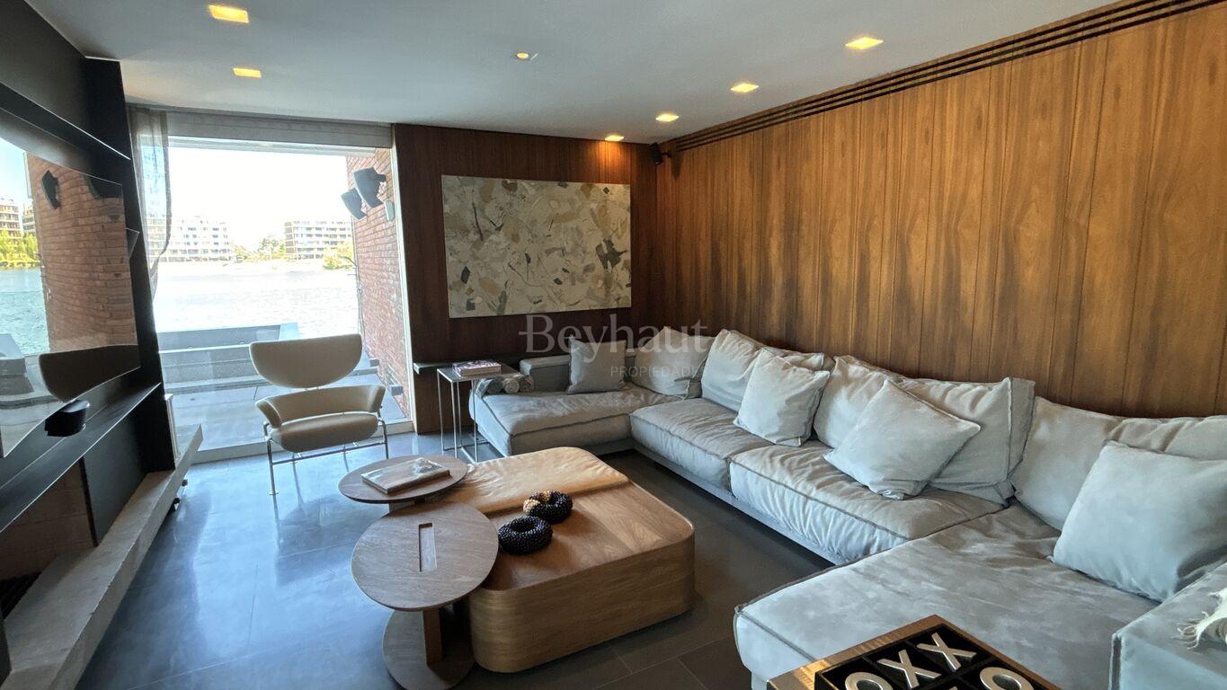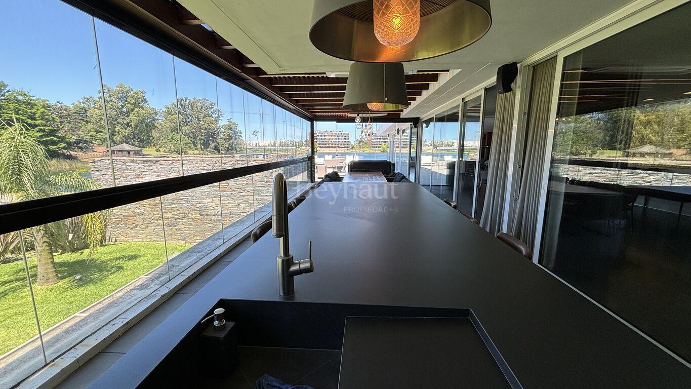 En el nivel inferior, un espacio independiente para invitados con living-comedor, cocina, dormitorio en suite, terraza privada, jardín y acceso directo a un embarcadero exclusivo.