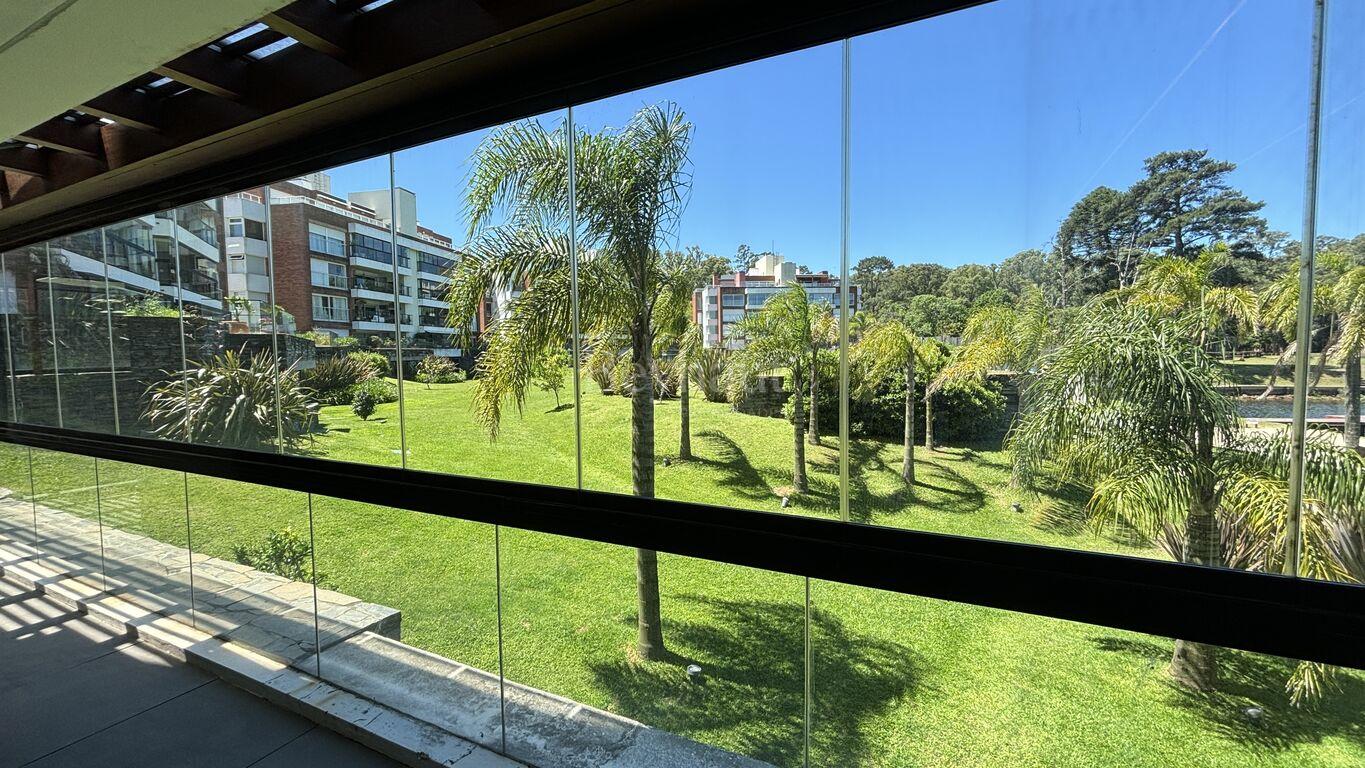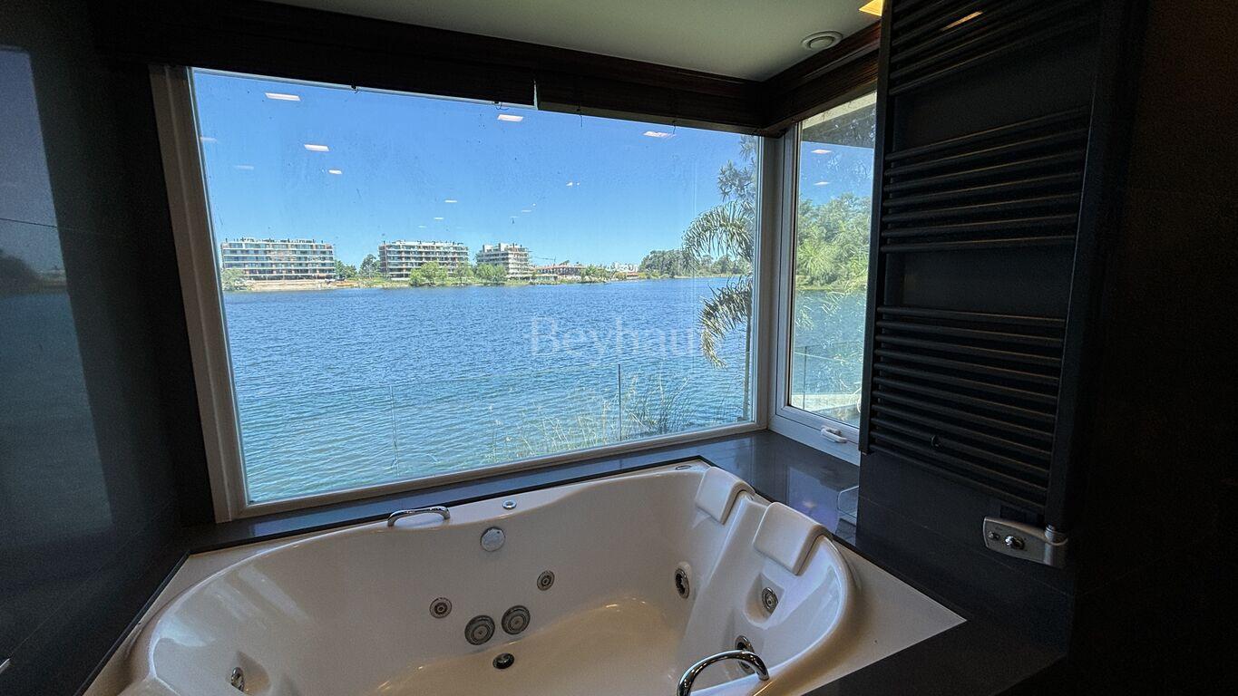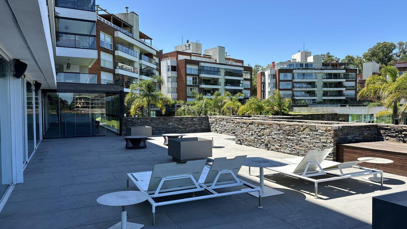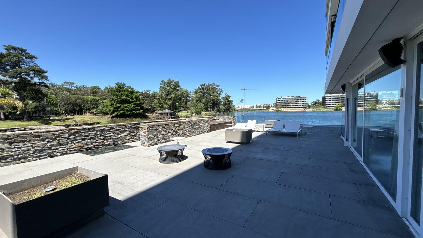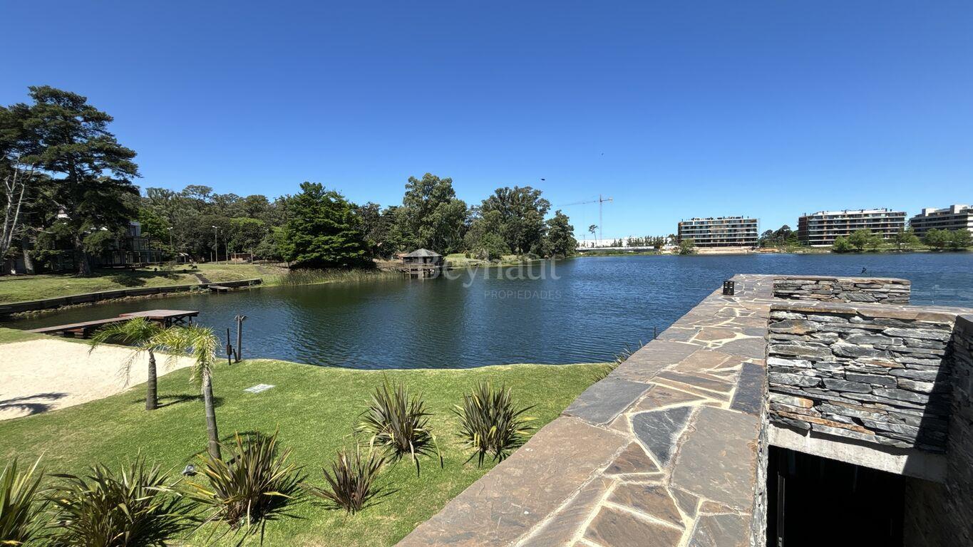 Excepcionales amenities, como piscina, spa, gimnasio, barbacoa, y una playa privada con acceso directo al lago.