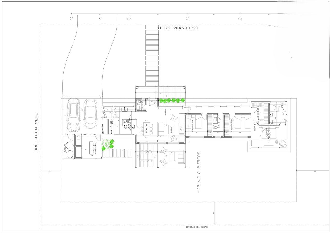 La casa se desarrolla en una planta, por un lado se encuentra el living comedor con cocina integrada y un toilette, seguido de 2 dormitorios, un baño completo y un tercer dormitorio en suite con vestidor. A su vez la casa cuenta con un espacio de lavadero, cochera para dos autos, y terrazas exteriores con parrillero.