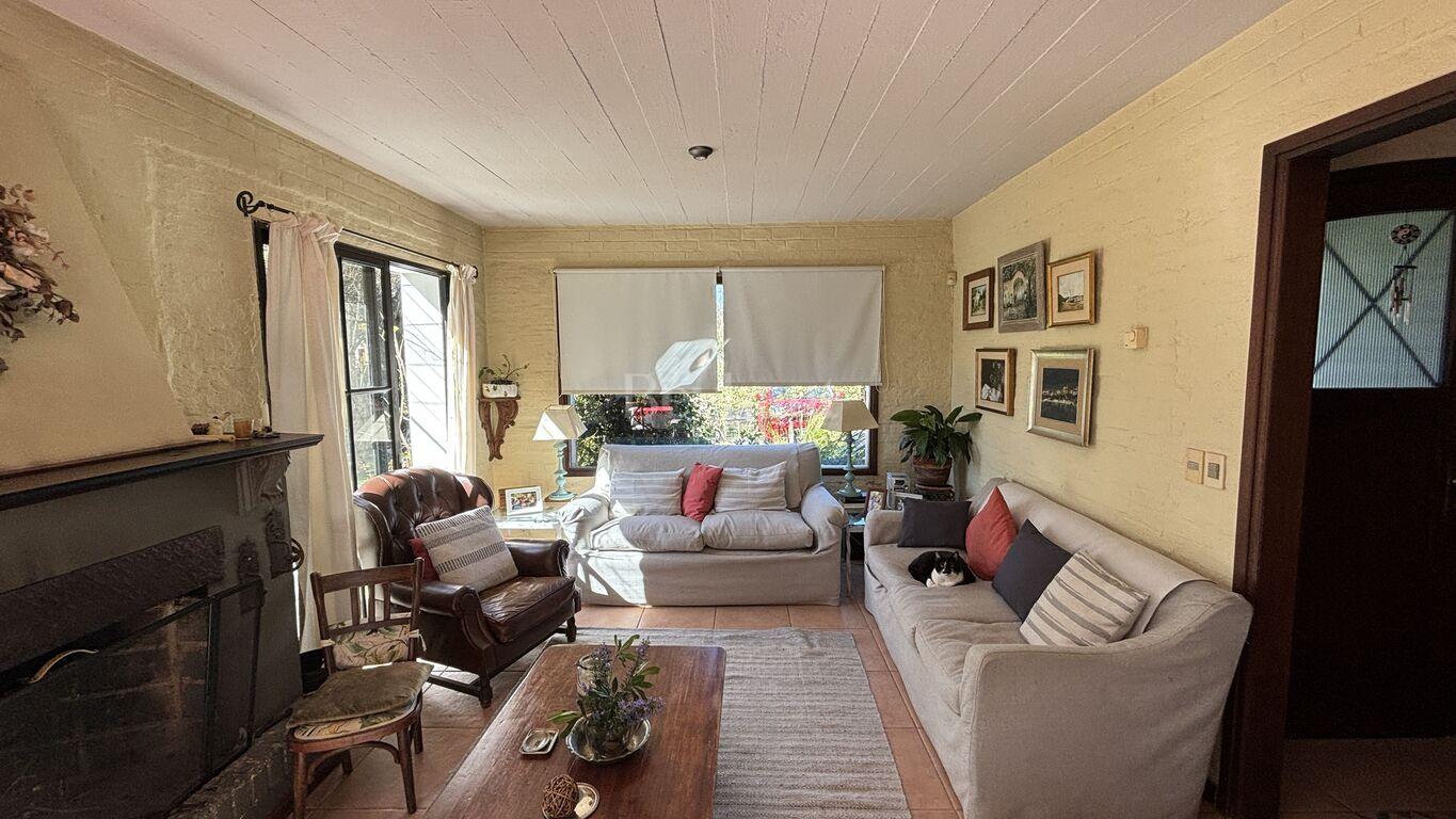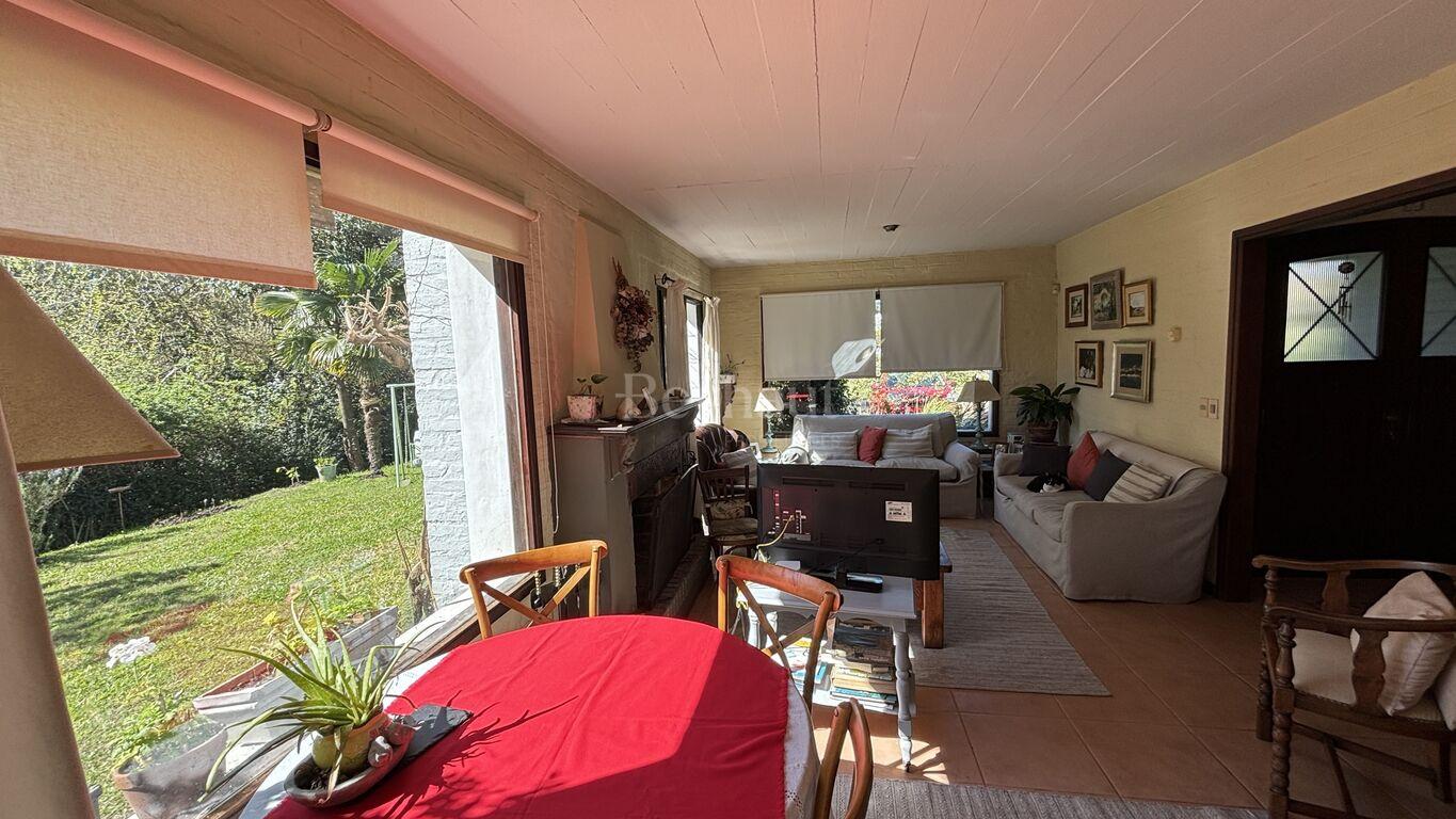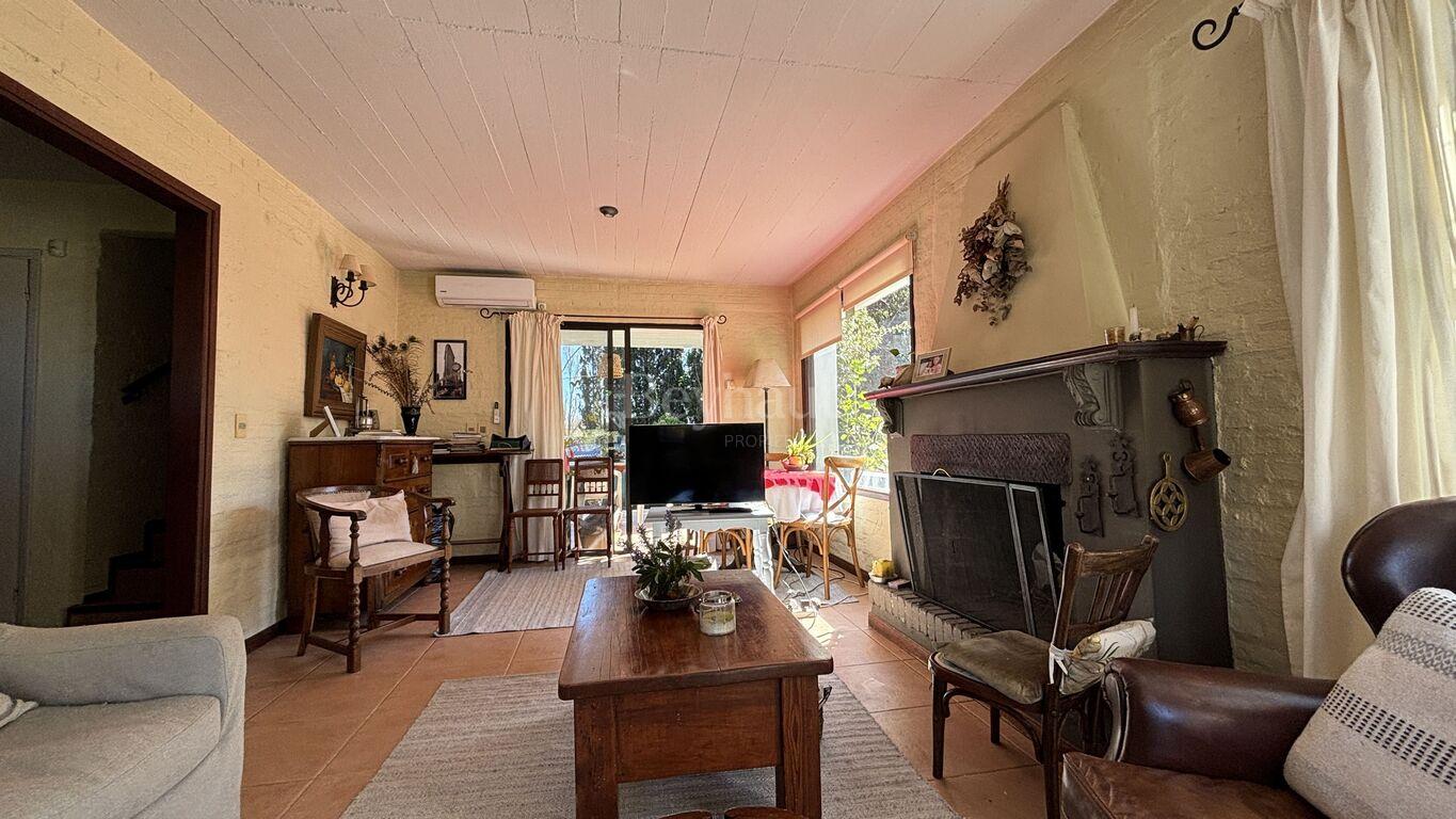 Hall de entrada, living comedor con estufa a leña y salida directa al jardín.