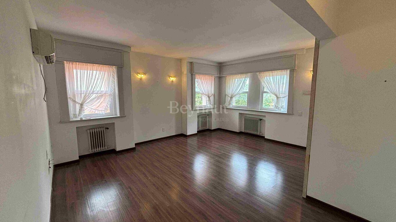 Mantiene cocina, aberturas de madera/vidrio simple y pisos de parquet de época.