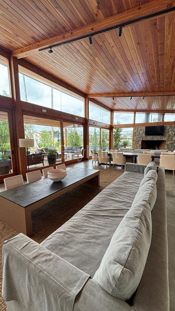 Al ingresar, un amplio living comedor con grandes ventanales y estufa a leña se convierte en el corazón de la casa, brindando calidez y luminosidad durante todo el día.