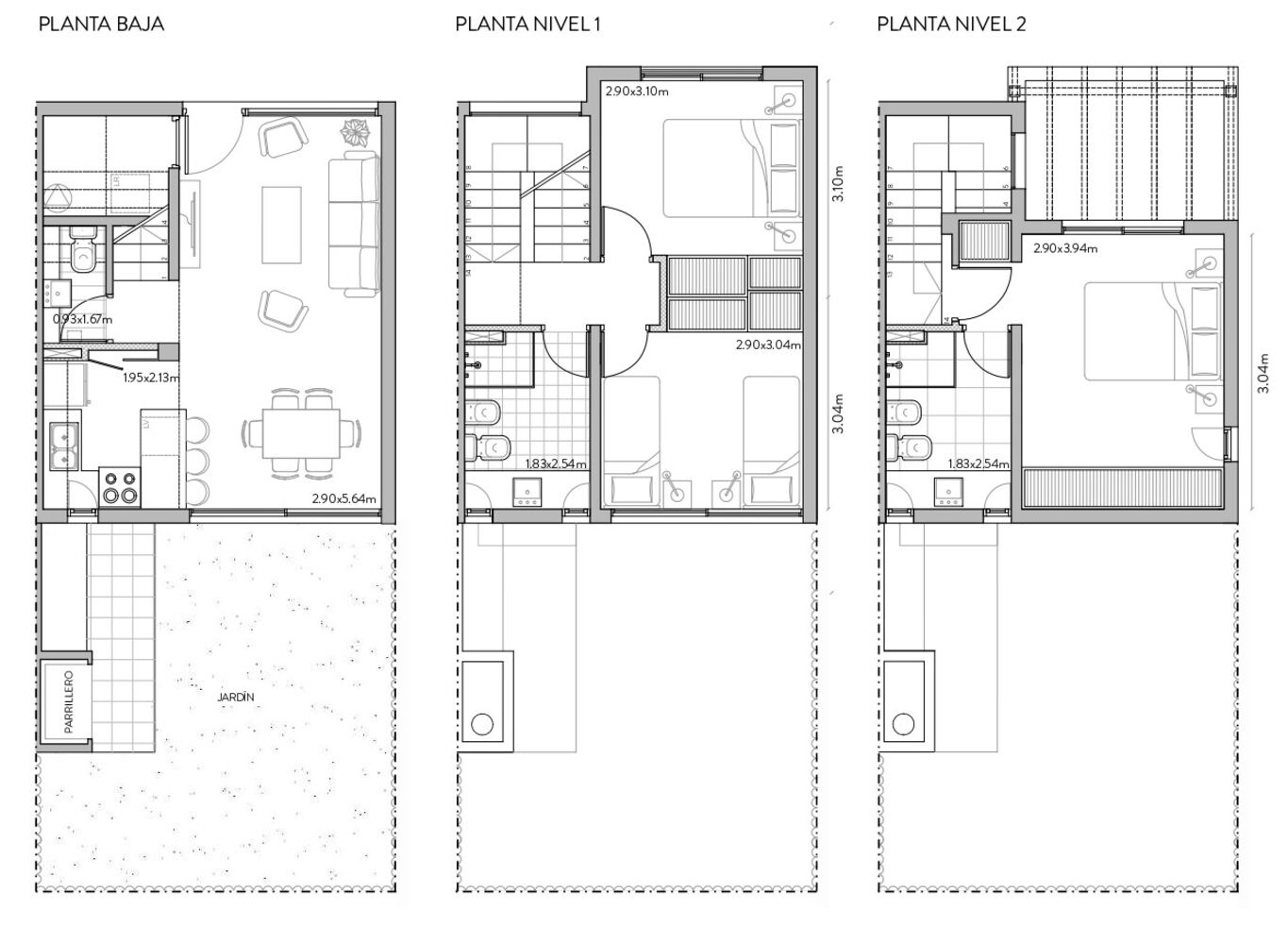 En la segunda planta alta encontramos dos dormitorios y un baño completo, y en la tercera planta el dormitorio principal con baño en suite.